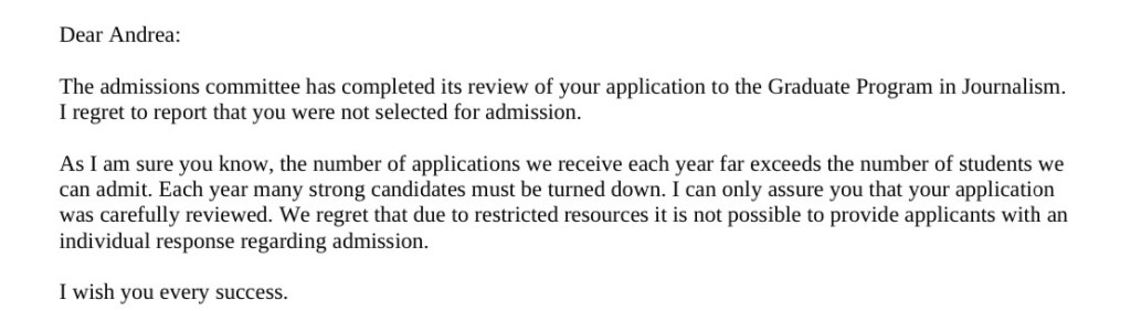 I have been writing since I have the ability to read and use a pencil properly and even took the courage to start a personal blog this year to begin my preparation for all the writing that awaits me at (rejecting University) . Being a part of such a prestigious faculty would be a complete honor and great opportunity for data analysis software to take my reporting skills to a next level. New technologies, artificial intelligence and data mining is something I really want to reinforce within the program and bring back to my country where data remains hidden due to the lack of the proper resources.