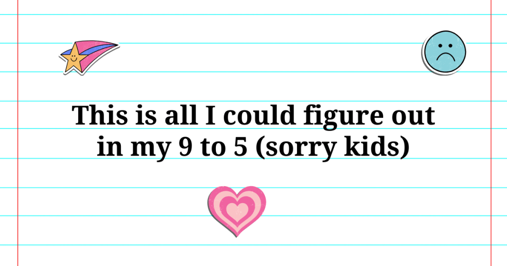 Hmm… the job market seems like a relevant topic for next class. I recommend you listen to Dolly Parton´s 9 to 5 song to learn about the vibe of what having a job feels like.