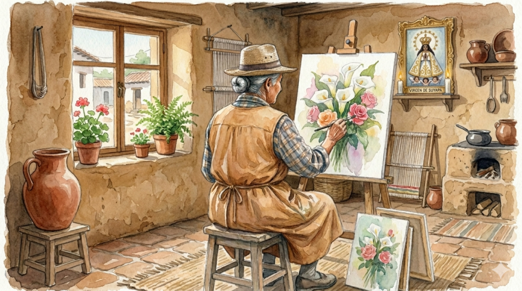 Sus cuadros de flores todavía pintan nuestra casita, así que la veo todos los días en sus trazos y líneas bien marcadas. Ella nunca fue a la escuela como yo pero siempre admiré ese don de arte con el que nació mi mujer. También la veo en los ojos de mi Lucía que aunque ya casi alcanza nuestra cuenta de aniversarios , nunca me deja olvidado aun cuando se ha mudado a la capital para tratar de ayudar a este pobre viejo con algunos centavos que me cuesta aceptar, porque después de todo con mis 75 años todavía soy soldador, uno de los de antes.